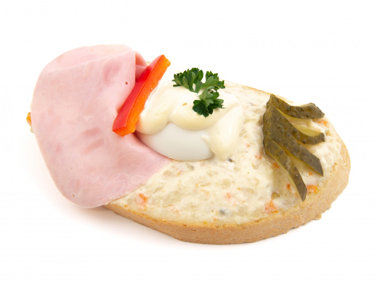 Složení: Veka tuková:/ pšeničná mouka, voda, řepkový olej rafinovaný, droždí, jedlá sůl kamenná, dextróza, sušená syrovátka, sladová mouka ječná a pšeničná, enzymy, emulgátory E472e a slunečnicový lecitin E322, kypřící látka E917, látka zlepšující mouku E300, protispékavé látky E535 a E170, regulátor kyselosti E500, stabilizátor E412/, bramborový podmaz:/ brambory konzumní vařené (62%), směs do bramborového salátu:/ voda, mrkev, okurky, cibule, hrášek, ocet kvasný lihový, jedlá sůl, sladidlo sacharin/, majonéza:/ řepkový olej, voda, emulgovaný vaječný žloutek, jedlá sůl, maltodextrin, ocet kvasný lihový, modifikovaný škrob bramborový E1414, stabilizátory E412, E415 a E410, hořčičné semeno, výtažek koření, cukr, konzervační látka E202, barviva karoteny/, cibule, hořčice:/ voda, hořčičné semeno, ocet kvasný lihový, cukr, jedlá sůl, koření/, cukr, jedlá sůl kamenná, pepř černý mletý, kypřící látka E917, protispékavá látka E535, regulátor kyselosti E500/, vejce vařená (18%):/ vejce, voda, jedlá sůl, regulátor kyselosti E330, konzervační látka E211/, šunka výběrová:/ vepřová kýta 70%, voda, jedlá sůl, konzervační látka E250, stabilizátory E451 a E450, zahušťovadla E407a a E415, cukr, antioxidanty E316 a E301/, majonéza:/ řepkový olej, voda, emulgovaný vaječný žloutek, jedlá sůl, maltodextrin, ocet kvasný lihový, modifikovaný škrob bramborový E1414, stabilizátory E412, E415 a E410, hořčičné semeno, výtažek koření, cukr, konzervační látka E202, barviva karoteny/, okurka kyselá:/ okurky nakládačky, voda, ocet kvasný lihový, jedlá sůl, extrakt koření, regulátor kyselosti E509, sladidlo sacharin E954/, paprika červená, petrželka. Minimální trvanlivost 24 hodin.Skladujte v suchých místnostech, bez prachu, v čistých přepravkách na vozíčkách popř. na prázdných přepravkách k tomu určených při teplotě do 5°C.