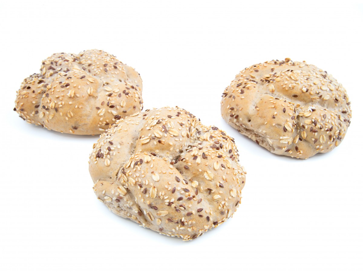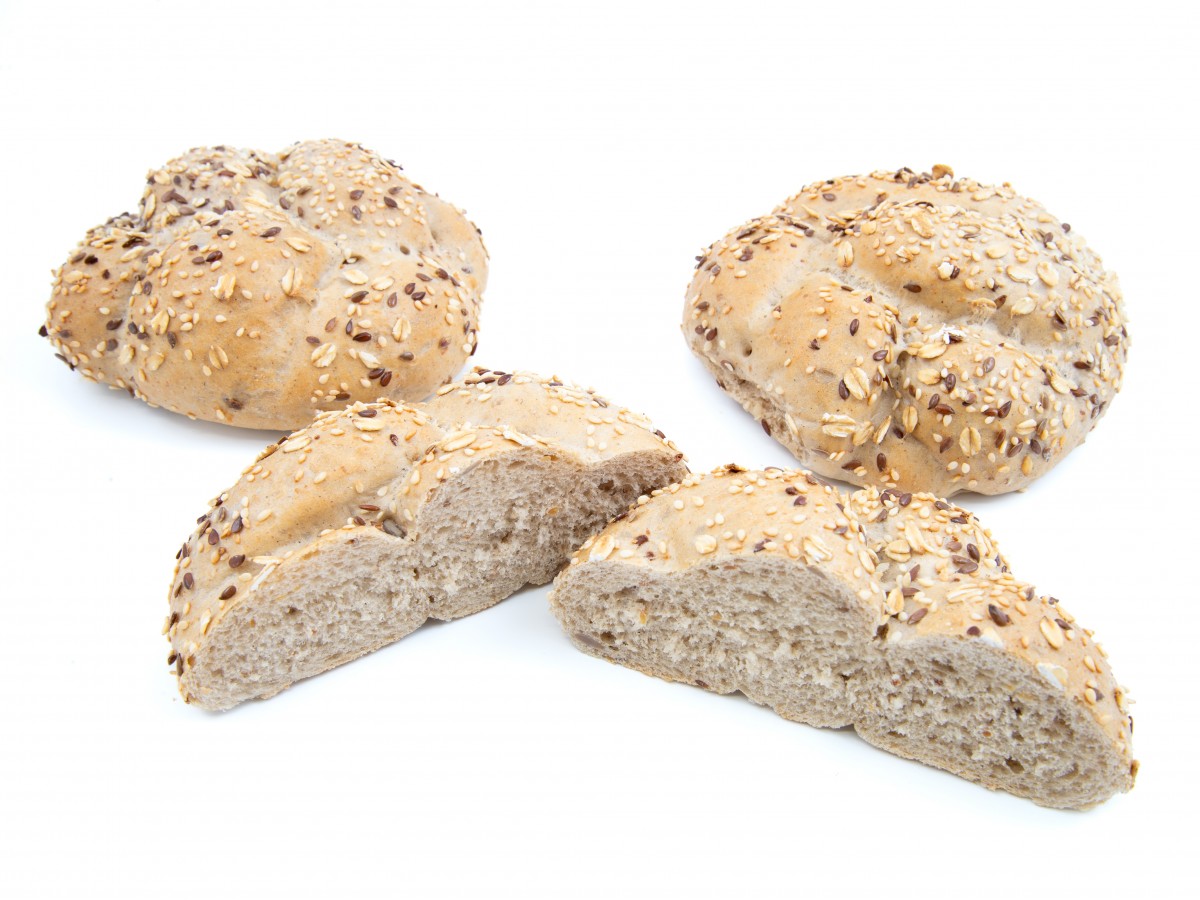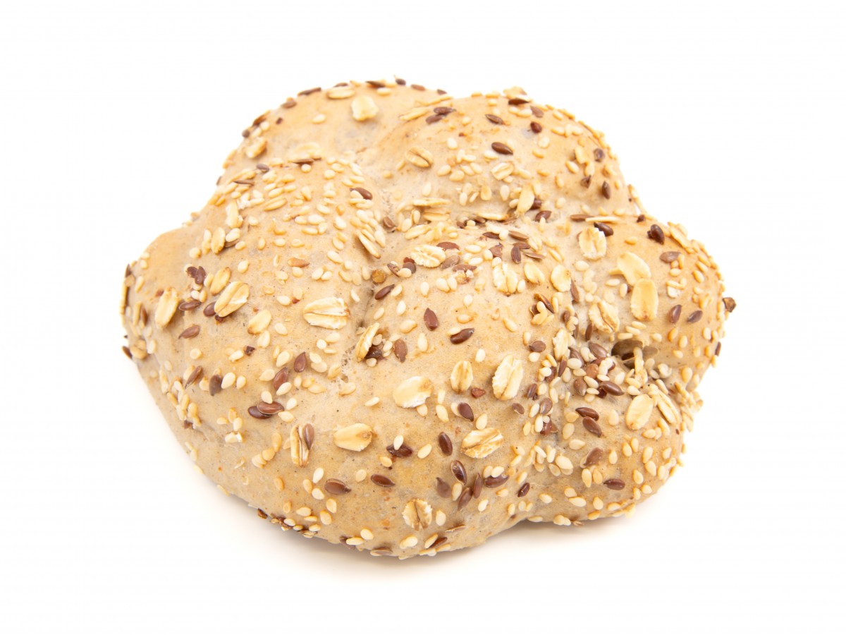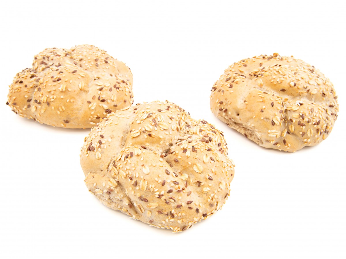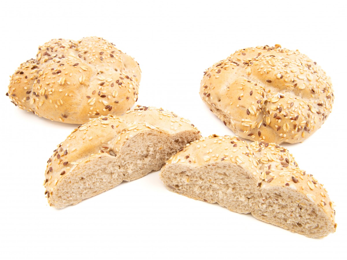 Pšeničná bulka do tvaru hvězdičky. Kůrka je namáčená do posypu se sezamu, lněného semínka a ovesných vloček.