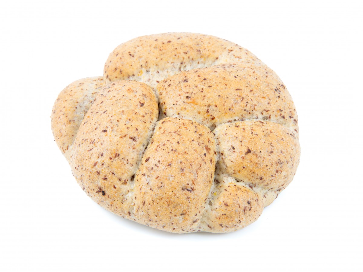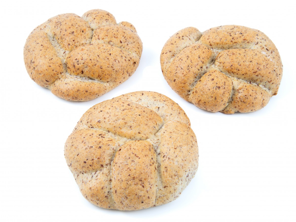 Pšeničná bulka do tvaru hvězdičky. Kůrka je namáčená do posypu z máku.