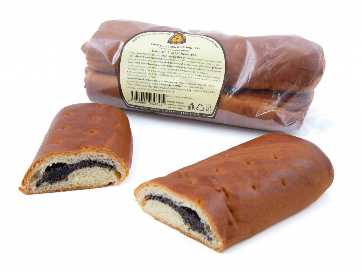 Klasické podlouhlé špičky balené po 2 nohách plněná makovou náplní.