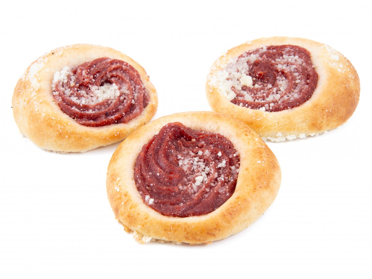 Složení: Náplň ovocná (39%):/ mražené jahody min. 250g/1kg výrobku, cukr, sterilizovaná jablečná dřeň min. 210g/1kg výrobku, voda, strouhanka:/ pšeničná mouka, řepkový olej rafinovaný, droždí, jedlá sůl kamenná, cukr, dextróza, sušená syrovátka, sladová mouka ječná a pšeničná, kmín, mák, sezam, enzymy, emulgátory E472e a slunečnicový lecitin E322, kypřící látka E917, látka zlepšující mouku E300, protispékavé látky E535 a E170, regulátor kyselosti E500, stabilizátor E412/, acetylovaný zasíťovaný adipan škrobu E1422, zahušťovadlo E466, regulátor kyselosti E330, aroma, barvivo E120, konzervační látka E202, povrchově ošetřeno E202/, pšeničná mouka, voda, cukr, palmový tuk a řepkový olej, droždí, pasterovaná vaječná melanž, jedlá sůl kamenná, pšeničný lepek, ječná sladová mouka, hrachová vláknina, deaktivované droždí sušené, jablečná dřeň, modifikovaný škrob bramborový E1414, enzymy, emulgátor E471, konzervační látka E202, kypřící látka E917, látka zlepšující mouku E300, protispékavá látka E535, regulátory kyselosti E330 a E500, citronové a máslové aroma, barvivo E160b. Minimální trvanlivost 24 hodin. Skladujte v suchých místnostech, bez prachu, v čistých přepravkách na vozíčkách popř. na prázdných přepravkách k tomu určených.
