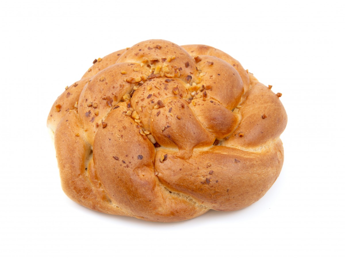 Sladké kynuté těsto zapletené do tvaru copánku posypané rozdrcenými vlašskými ořechy. Svěle se hodí na snídani ke kakau.