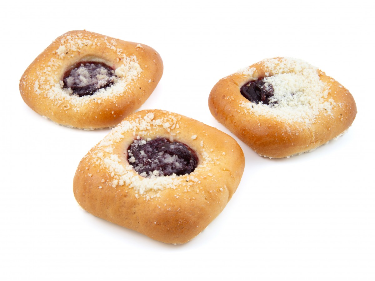 Složení: Pšeničná mouka, náplň tvarohová (20%):/ odtučněné mléko, voda, cukr, modifikovaný kukuřičný škrob E1422, sušený vaječný bílek, izolovaná rostlinná vláknina, jedlá sůl kamenná, mlékárenské kultury, sladidlo sukralóza, látka zvýrazňující chuť a vůni E1505, regulátor kyselosti E330, stabilizátor E466, aroma, barvivo beta karoten/, náplň višňová (20%):/ mražené višně min.240g/1kg výrobku, sterilizovaná jablečná dřeň min. 240g/1kg výrobku, voda, cukr, acetylovaný zesíťovaný adipan škrobu E1422, zahušťovadlo E466, koncentrát z mrkve a černého rybízu, regulátor kyselosti E330, aroma, konzervační látka E202, povrchově ošetřeno E202/, voda, cukr, rafinovaný bezerukový řepkový olej, droždí, pasterovaná vaječná melanž, pšeničný lepek, sladová mouka ječná, hrachová vláknina, deaktivované droždí sušené, jedlá sůl kamenná, jablečná dřeň, modifikovaný škrob bramborový E1414, konzervační látka E202, kypřící látka E917, látka zlepšující mouku E300, protispékavá látka E535, regulátory kyselosti E330 a E500, citronové aroma. Minimální trvanlivost 24 hodin. Skladujte v suchých místnostech, bez prachu, v čistých přepravkách na vozíčkách popř. na prázdných přepravkách k tomu určených.