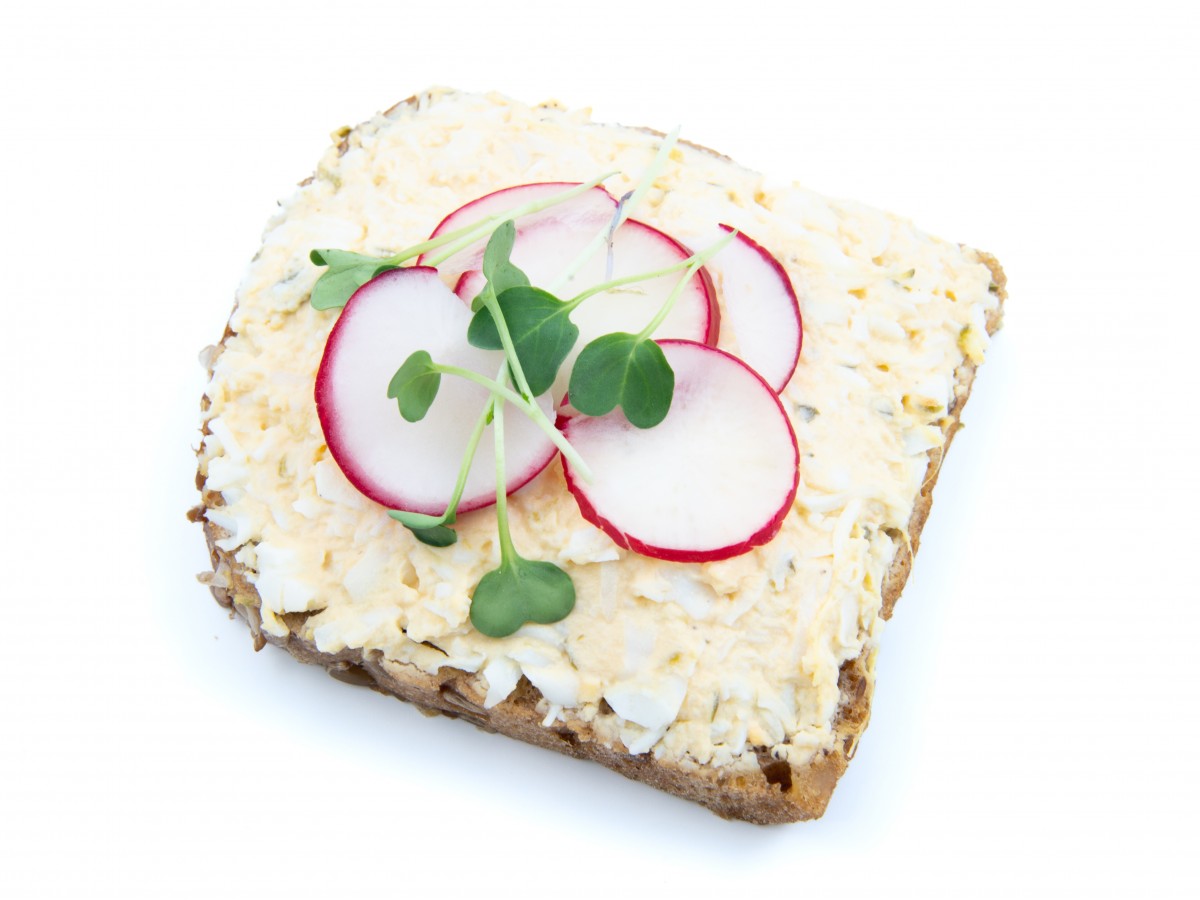 Složení: Chléb slunečnicový:/ pšeničná mouka, voda, žitná mouka, slunečnicové semínko (13%), vícezrnná směs:/ pšeničná mouka, ovesné vločky, žitná mouka, lněné semínko, pražený ječný slad, kmín, jedlá sůl kamenná, konzervační látka E202, kypřící látka E917, protispékavá látka E535, regulátor kyselosti E500/, droždí, jedlá sůl kamenná, pšeničná mouka celozrnná, pražený ječný slad, cukr, emulgátor E322, kypřící látka E917, protispékavá látka E535, stabilizátor E412, regulátory kyselosti E330, E270, E262, E516 a E500/, vajíčková pomazánka (51%):/ vejce (72%), majonéza:/ řepkový olej, voda, emulgovaný vaječný žloutek, ocet kvasný lihový, jedlá sůl, maltodextrin, modifikovaný škrob bramborový E1414, hořčičné semeno, cukr, výtažek koření, konzervační látka E202, stabilizátory E412, E415 a E410, barviva karoteny/, okurky nakládačky, voda, hořčičné semeno žluté, ocet kvasný lihový, jedlá sůl kamenná, cukr, pepř černý mletý, extrakt koření, sladidlo sacharin E954, konzervační látka E211, kypřící látka E917, protispékavá látka E535, regulátory kyselosti E330, E509 a E500/, ředkvičky čerstvé, výhonky ředkviček. Skladujte v suchých místnostech, bez prachu, v čistých přepravkách na vozíčkách popř. na prázdných přepravkách k tomu určených při teplotě do 5°C. Minimální trvanlivost uvedena na obalu výrobku.