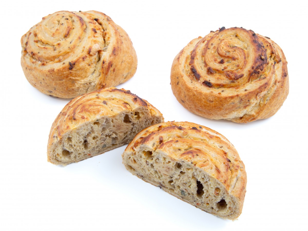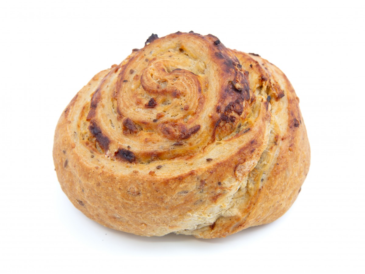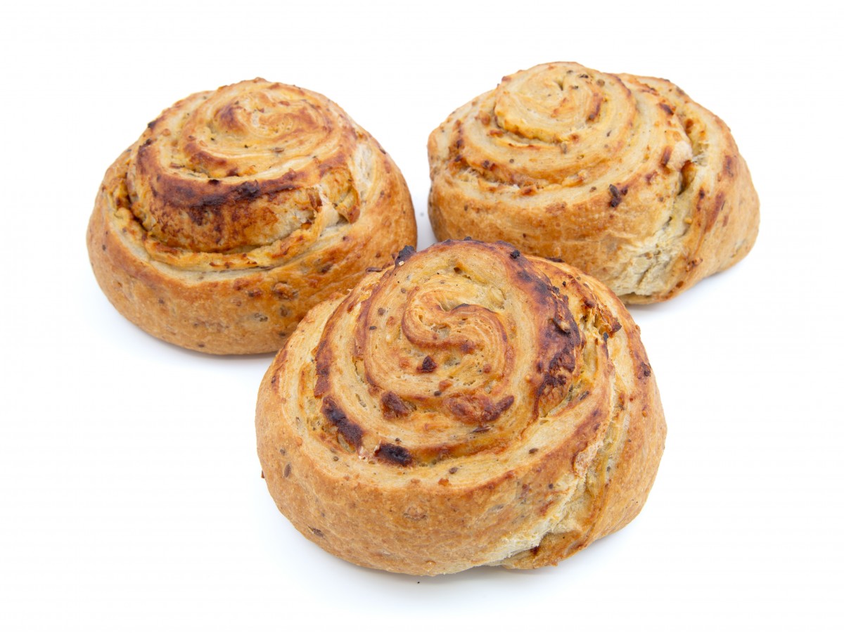 Slané vícezrnné těsto typu plundra, smotané do šneku, s náplní bešamelovou, ochucené restovanou cibulí.