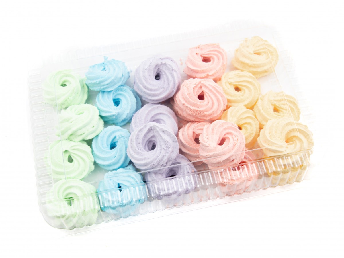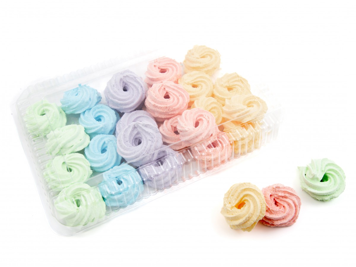 Složení: cukr, voda, vaječný bílek, vanilinový cukr (cukr, ethylvanilín, rostlinný olej), barviva (cukr, kukuřičný sirup, zvlhčující látka E422, voda, modifikovaný škrob E1442, želírující látka E406, konzervant E202, antioxidant E330, regulátor kyselosti E311c, barvivo E129 a E102(může nepříznivě ovlivňovat činnost a pozornost dětí).